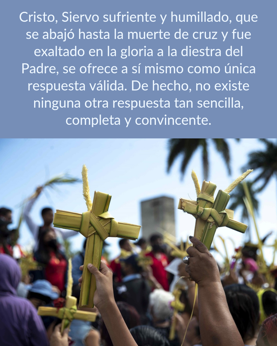 🌱Cristo, con su entrada en Jerusalén, comienza el camino de amor y de dolor de la cruz. Contémplenlo con renovado impulso de fe. ¡Síganlo! Él no promete una felicidad ilusoria; al contrario, para que logren la auténtica madurez humana y espiritual, los invita a seguir su ejemplo exigente, haciendo propias sus comprometedoras elecciones.