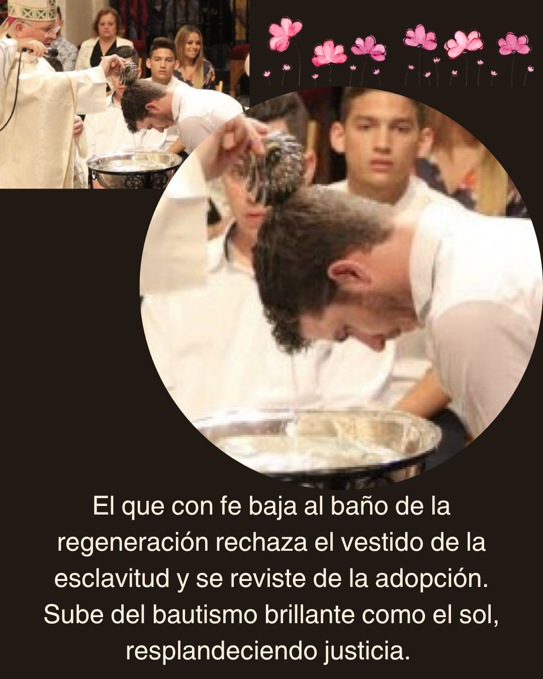 🌊El que con fe baja al baño de la regeneración rechaza el vestido de la esclavitud y se reviste de la adopción. Sube del bautismo brillante como el sol, resplandeciendo justicia.